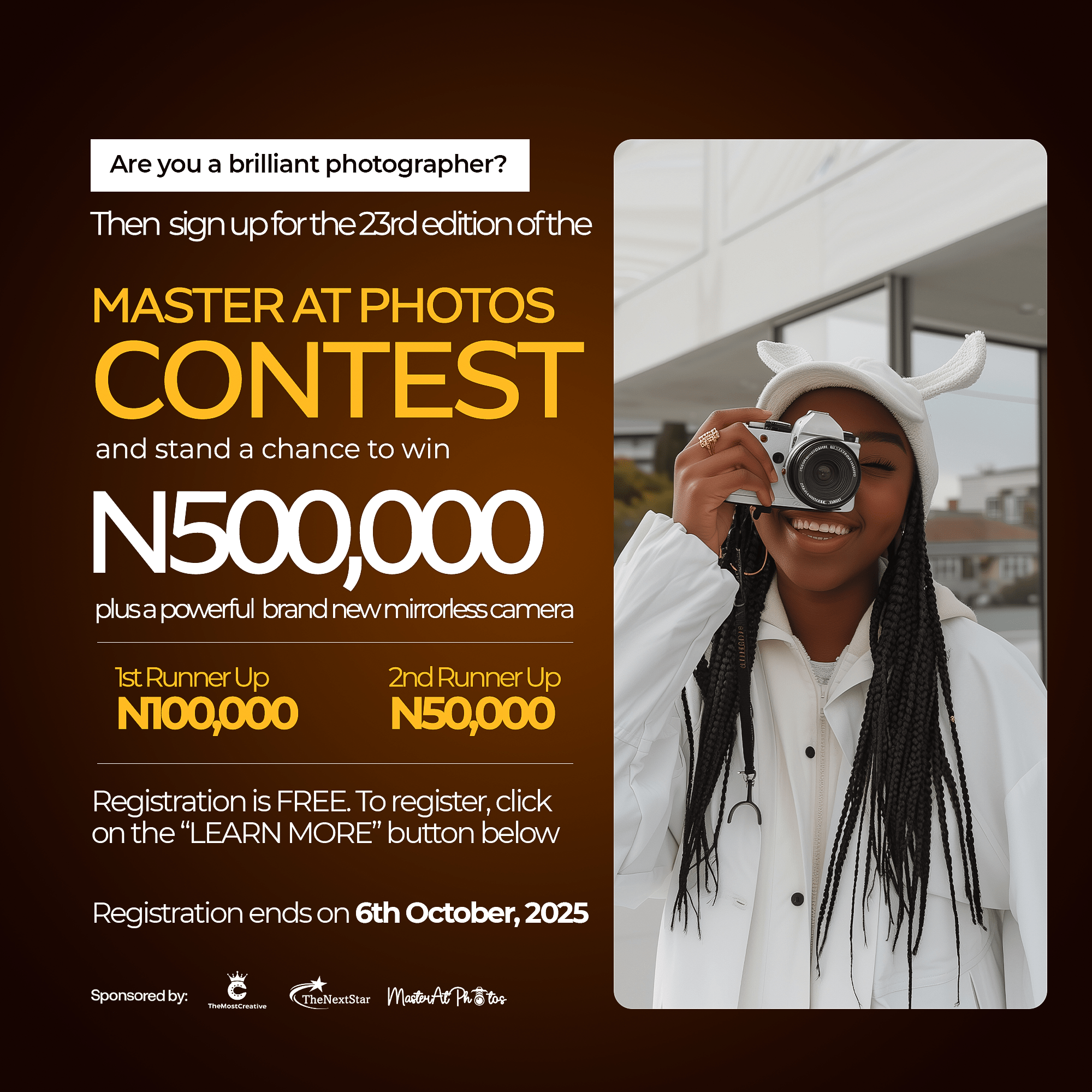 Masteratphotos.com is on a mission to help discover, expose and celebrate photographers across Nigeria; We do this through our online contests and competitions.
