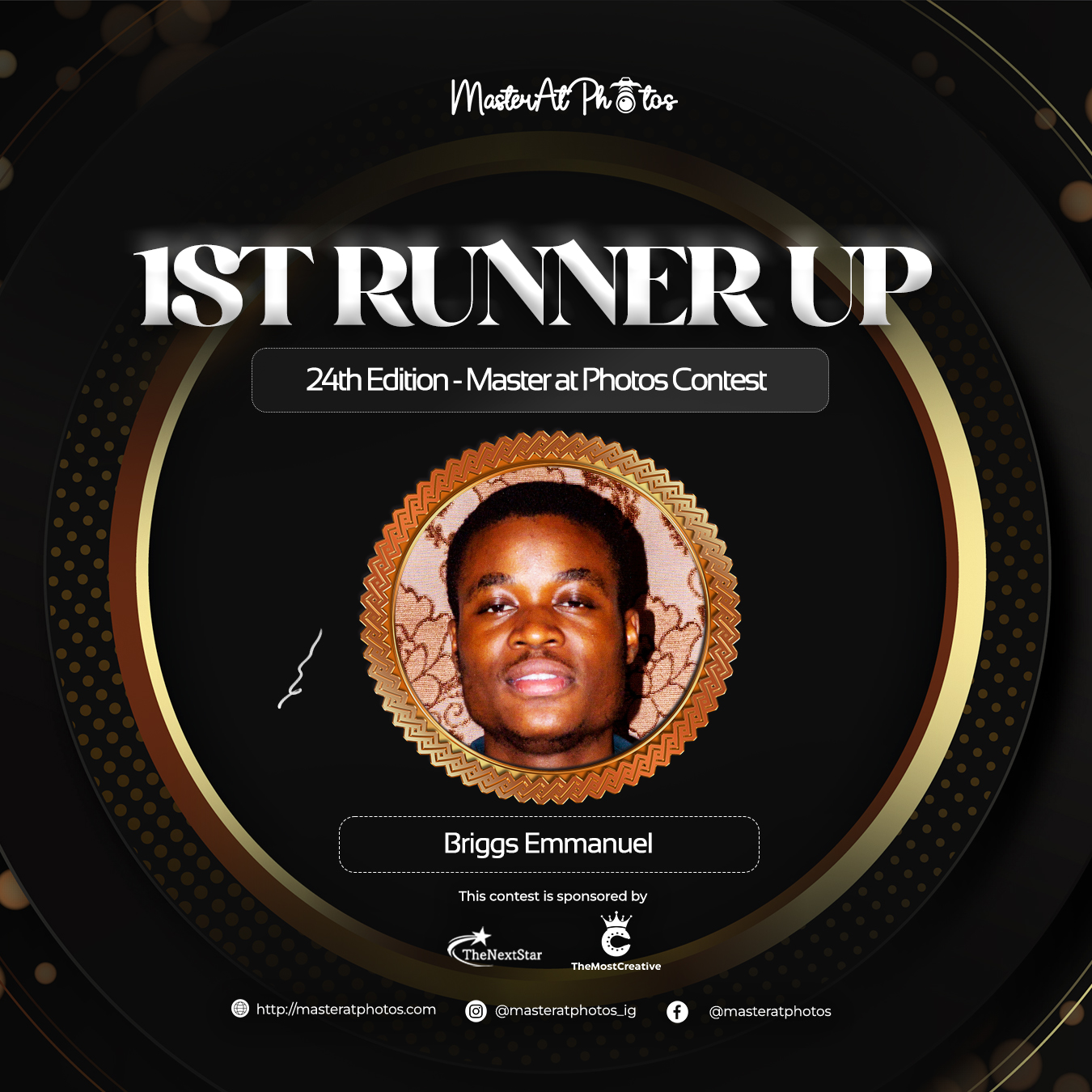This competition is sponsored by TheNextStar, TheMostCreative, and MasterAtPhotos.