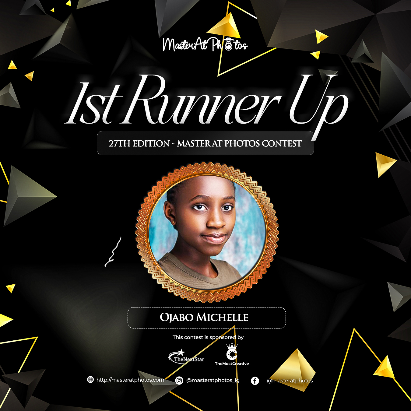 This competition is sponsored by TheNextStar, TheMostCreative, and MasterAtPhotos.