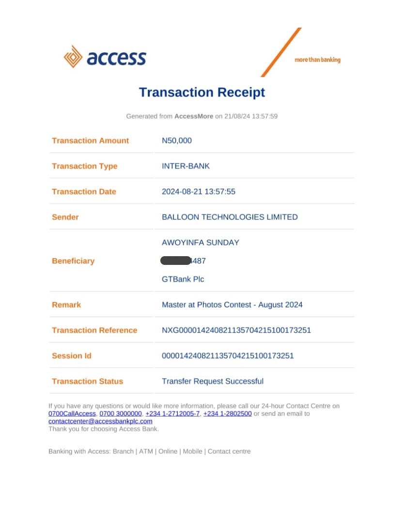 We say a big congratulations to Akingbade Gold for emerging as the Winner of the 9th Edition - Master at Photos Contest [Completed]