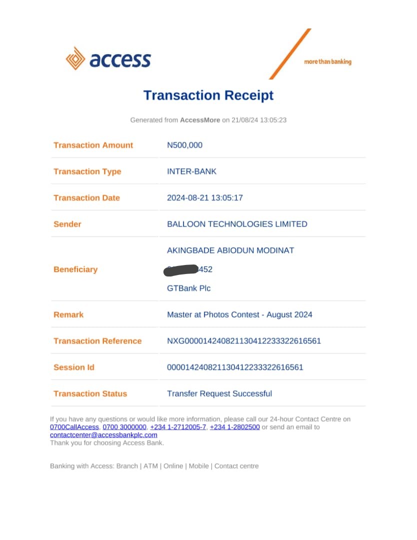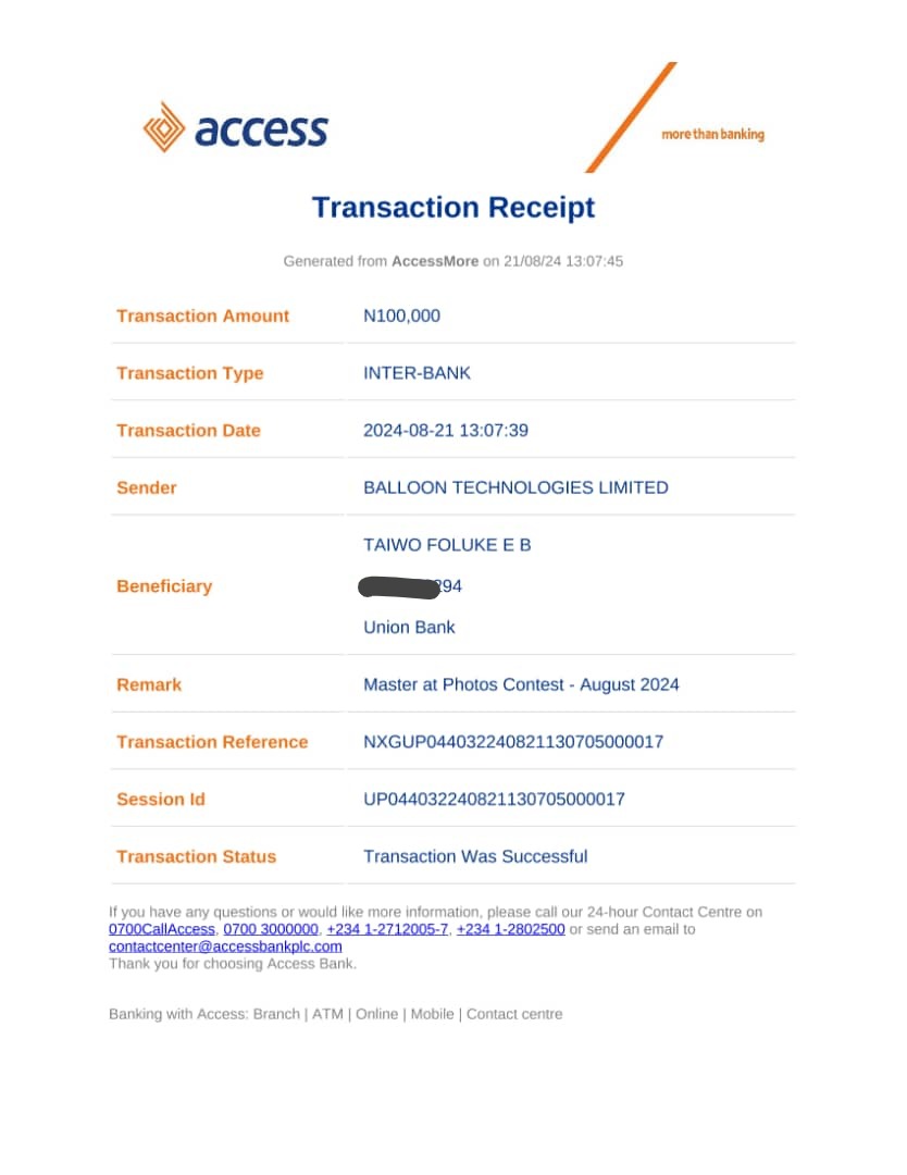 We say a big congratulations to Taiwo Omobolaji for emerging as the 1st Runner Up of the 9th Edition - Master at Photos Contest [Completed]