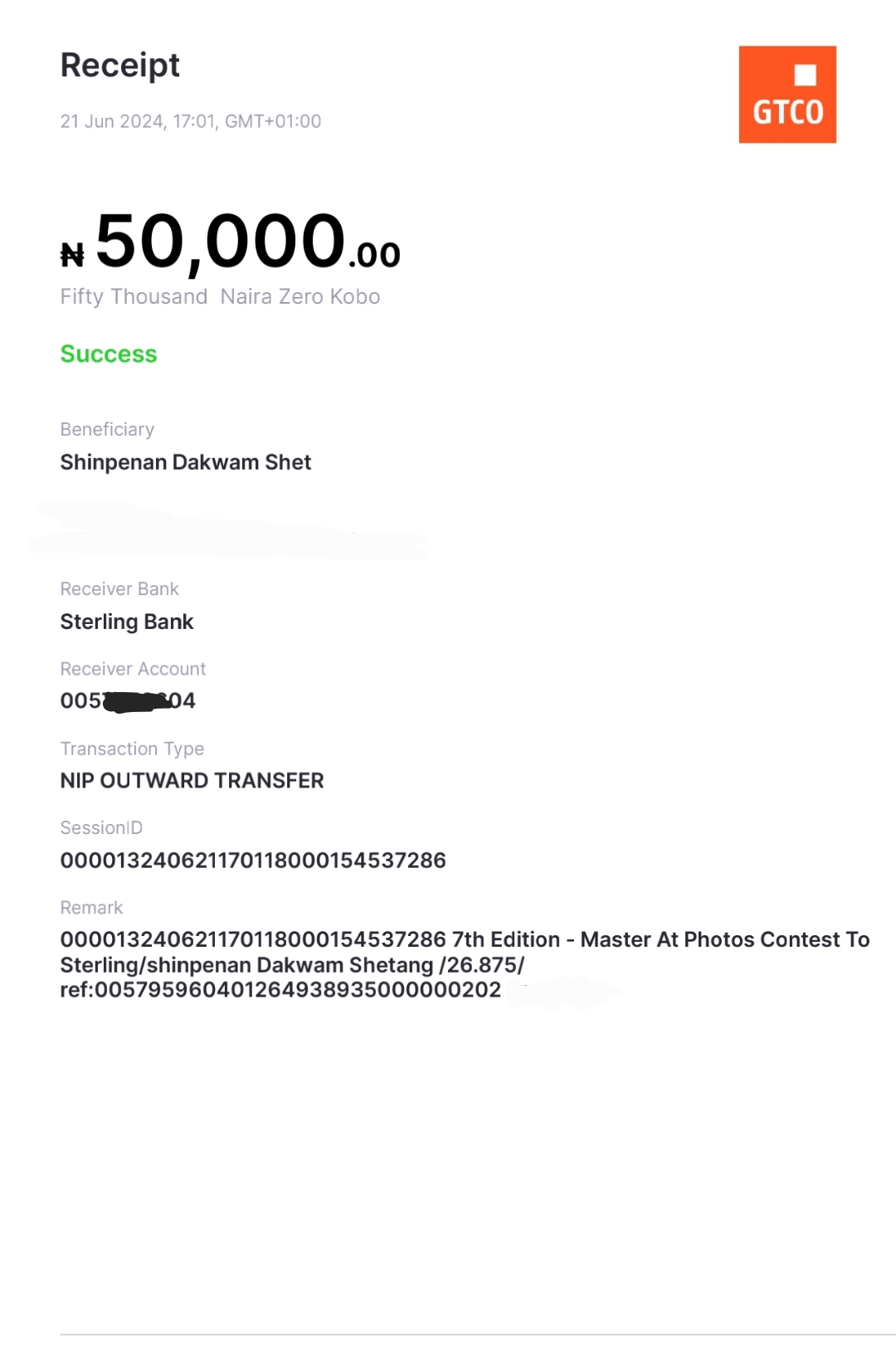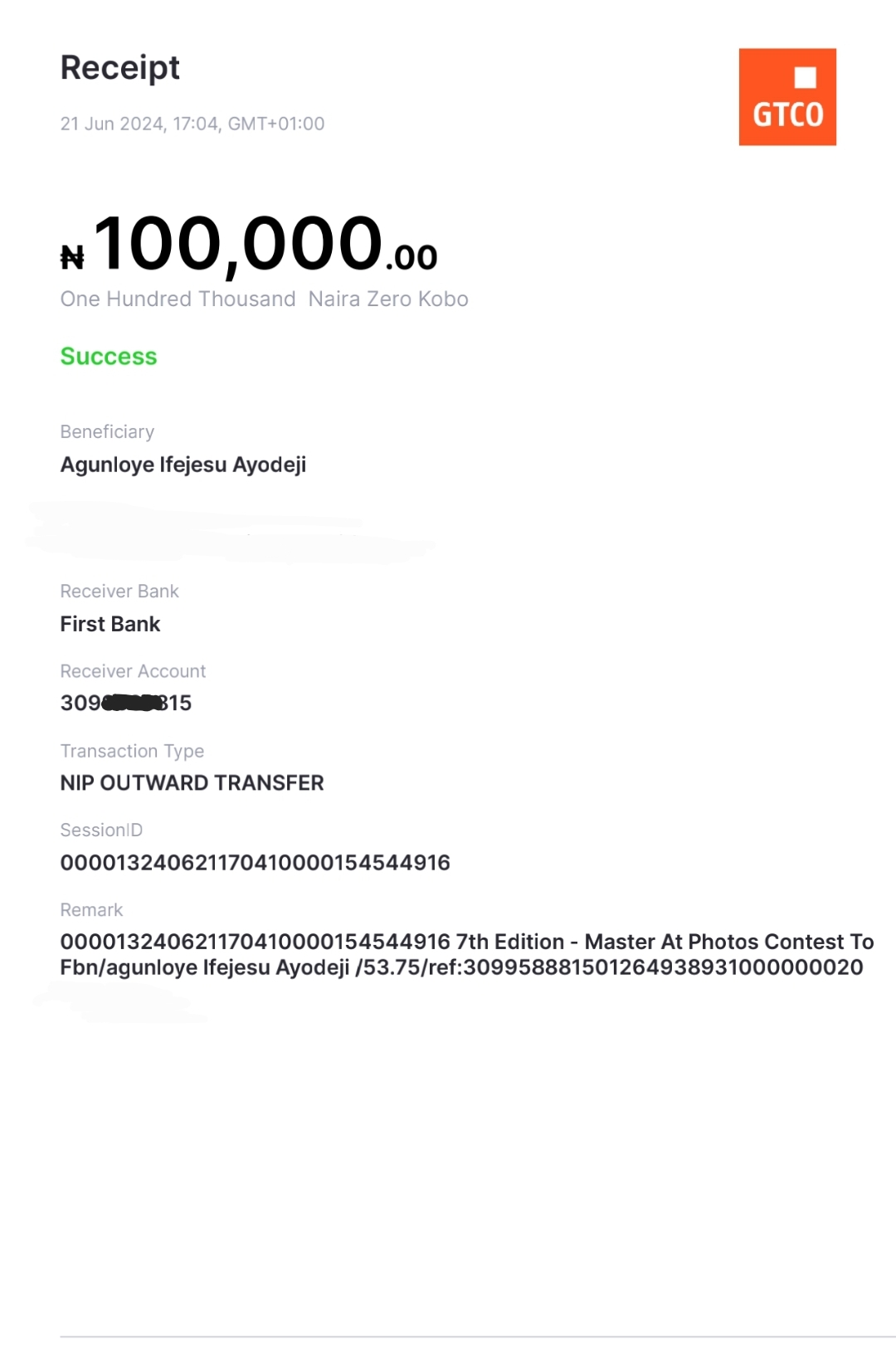 Here is a receipt of the transfer we made to ifejesu ayodeji