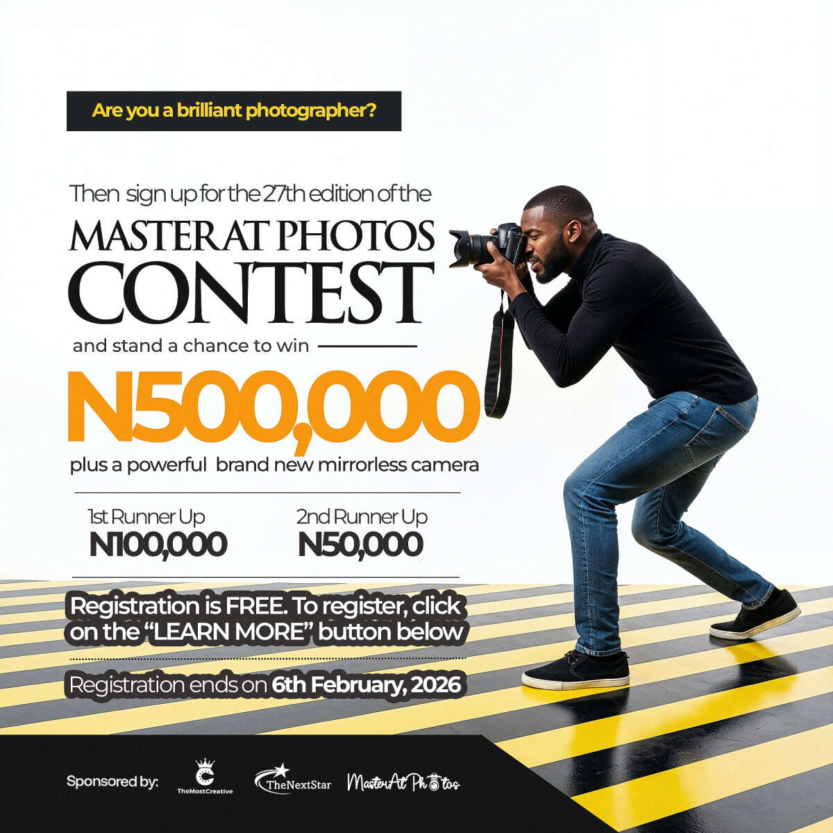 PS: Registration ends on the March 6th 2026. But we may end it earlier than that if we get up to 50 contestants before then. 23 contestants have registered already. So register as soon as possible to lock in your slot to win 500,000 and other amazing prizes.