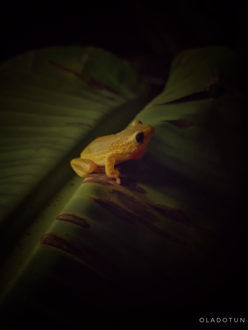 This image is that of a toad trying to balance on banana leaf. Though the leaf shakes under it's weight and also because of breeze. The road still focuses and aims to take a leap forward.