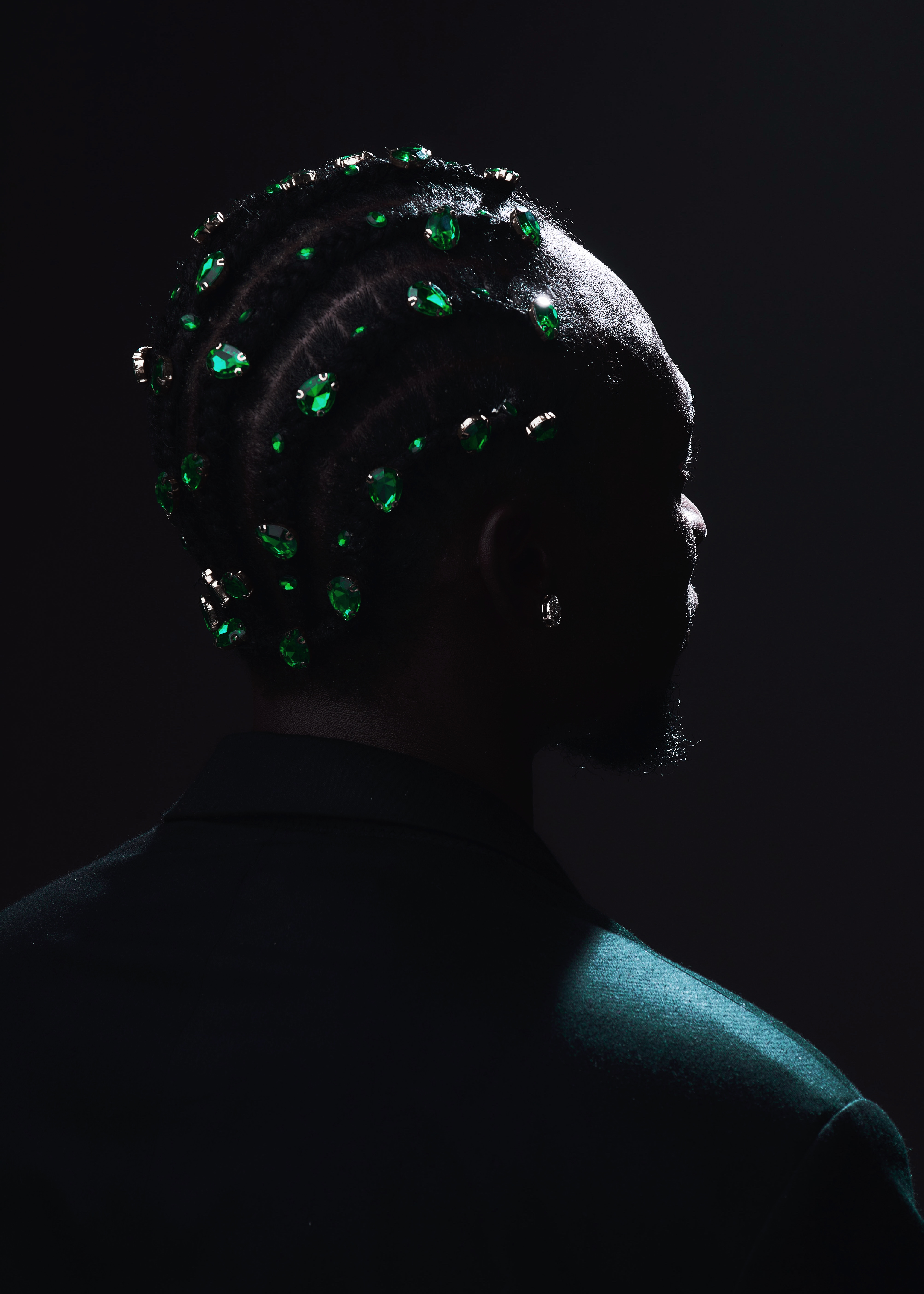 I met mark (the model) at a fashion show, when I saw him I was attracted to his style. The stones he had on his hair and suit, so I walked up to him and said I love your style and I would love to work with you to create an amazing image. Personally the image gives me the idea of beautiful diamonds shine better when it’s dark to see real beauty and a lesson “ being in the dark is not a bad thing something it’s an excuse to show your a star and shine”.