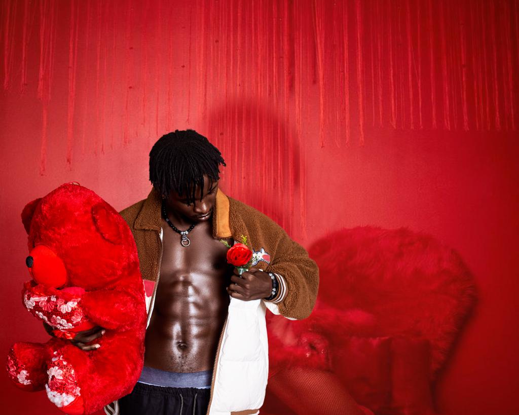 This photo tells a story of love and affection. The red teddy bear and rose symbolize romance and care, while the bold red background adds passion and intensity. It was inspired by the idea of expressing love in a powerful yet simple way through symbolic objects.