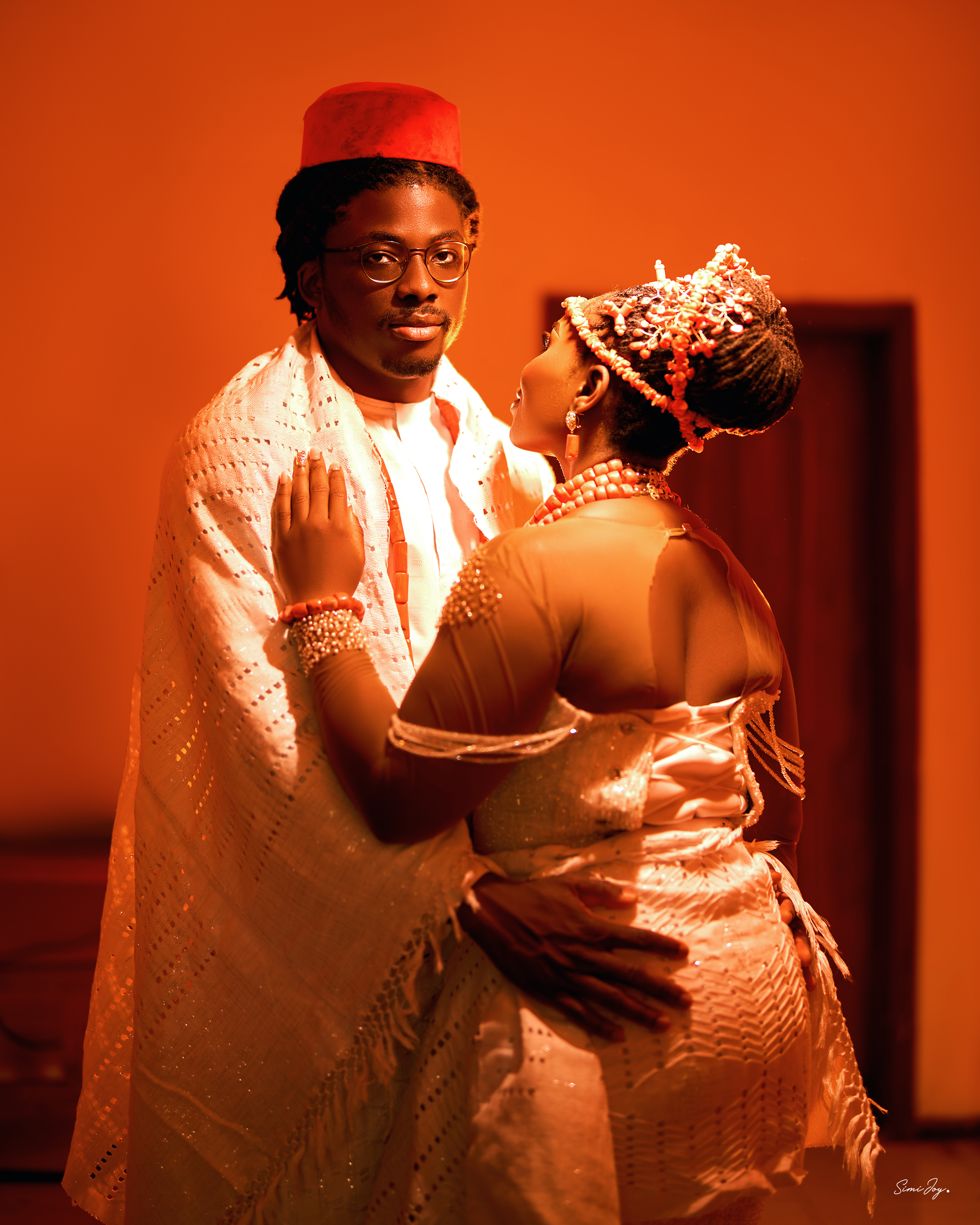The warm lighting was intentional to create a cinematic and emotional feel, almost like a timeless portrait. I also wanted the traditional attire and coral beads to highlight the richness of our culture and make the couple look regal, almost like royalty in their own story. Reflecting such a quiet moment to starting forever.