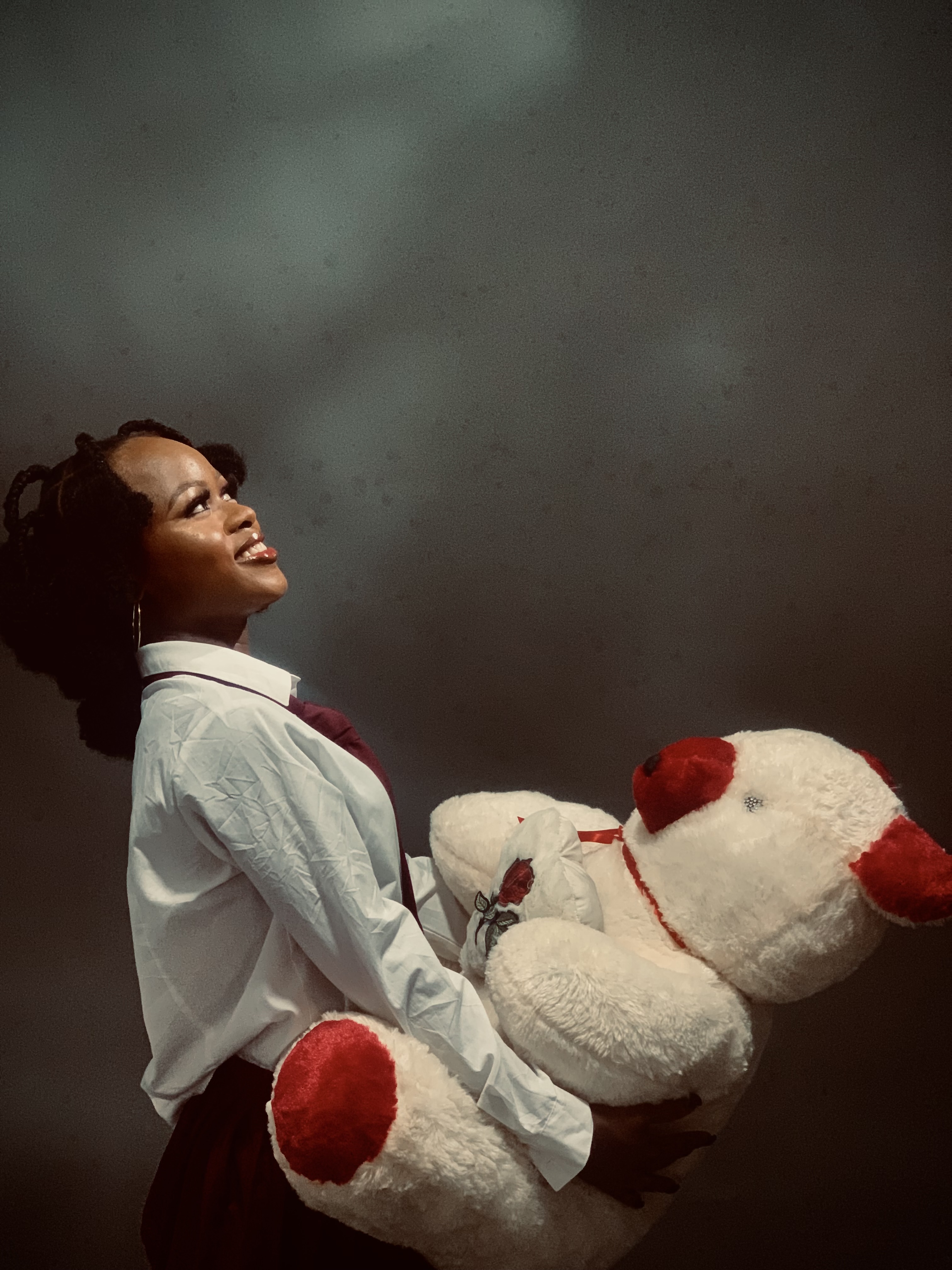 The rumpled shirt symbolizes how a girl child lives a rough and detrimental lifestyle all in the name of all the life vainly things/money (the doll). Looking up to who is never there, learning from where they were never thought, taking sips of strange and foreign wines…