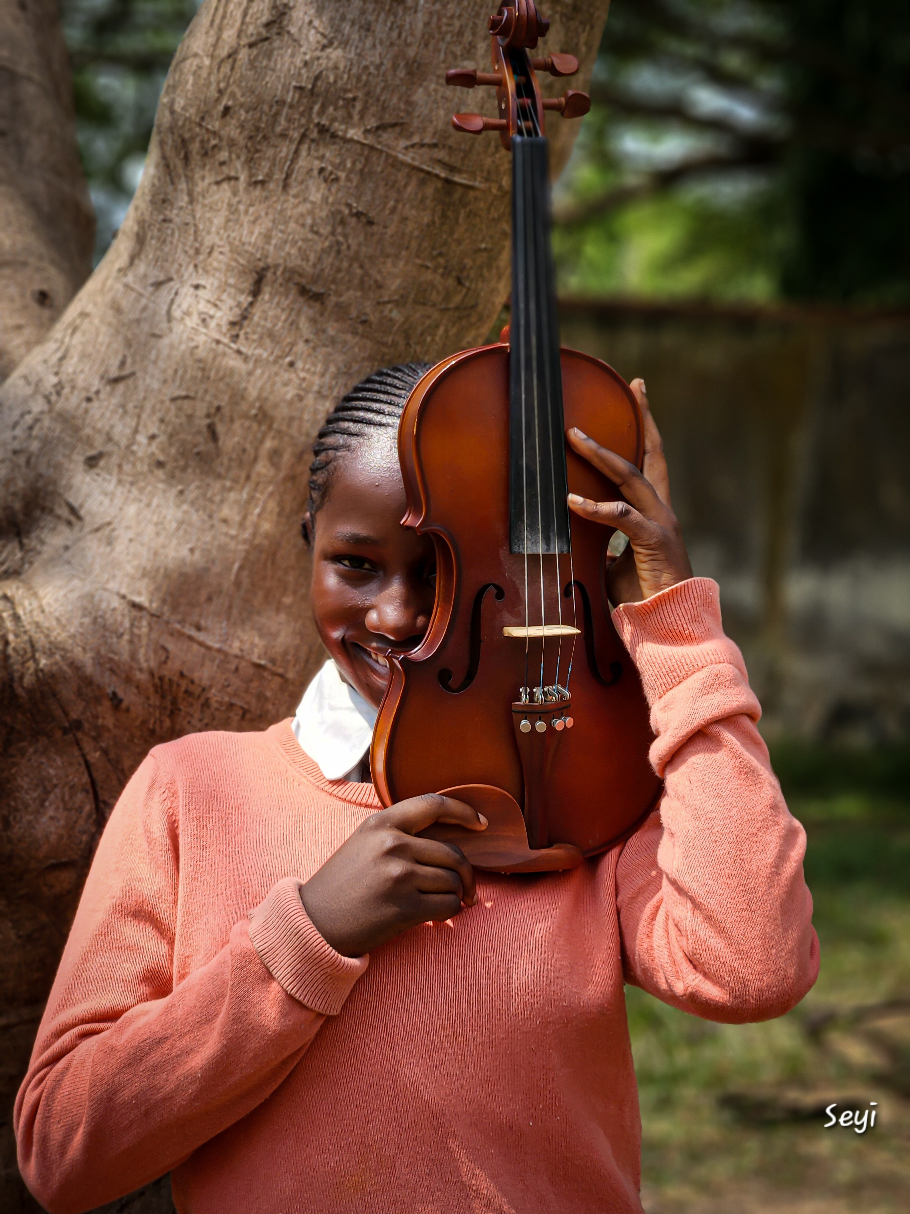I assured her not to worry, then gently guided her to tilt the violin, letting it cover half of her face. It was a simple pose, but it captured something deeper, her connection, her pride and her love.