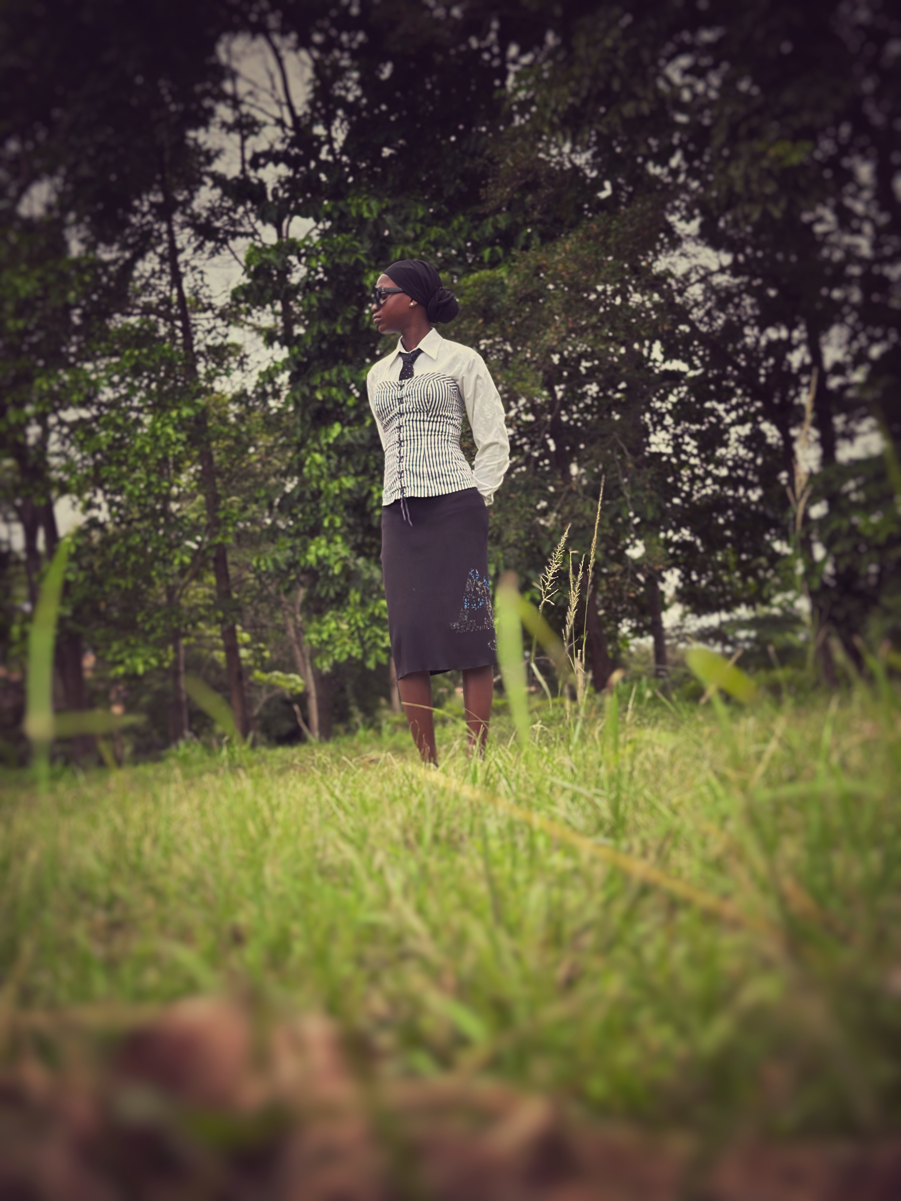 A young student stepped away from the noise of the world and into the quiet of nature. Standing alone in the field, she looked into the distance, thinking about her dreams and the future she wanted to build. The trees around her seemed to stand like silent witnesses to her journey, while the grass beneath her feet reminded her that growth takes time. In that calm moment, the picture tells the story of a person caught between who she is now and who she hopes to become. 🌿✨